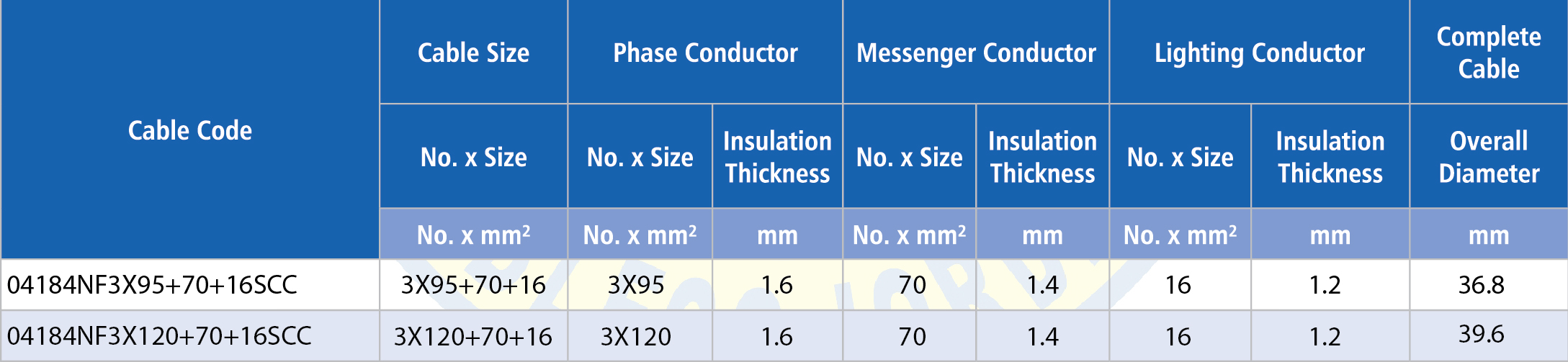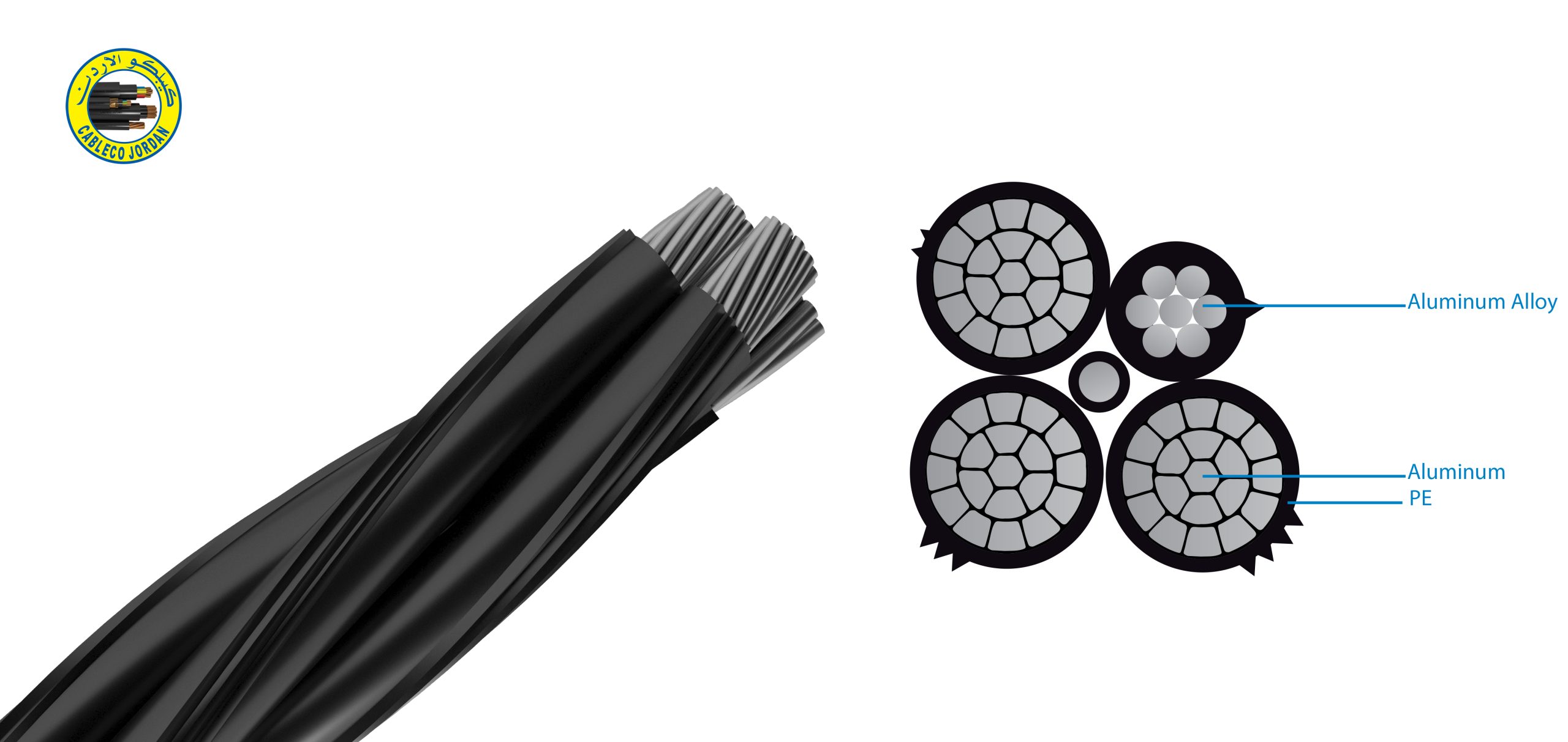 This type of cable consists of two to four insulated cores of Aluminum conductors twisted around bare or insulated Aluminum Alloy Conductor (Messenger) and consist of following construction.